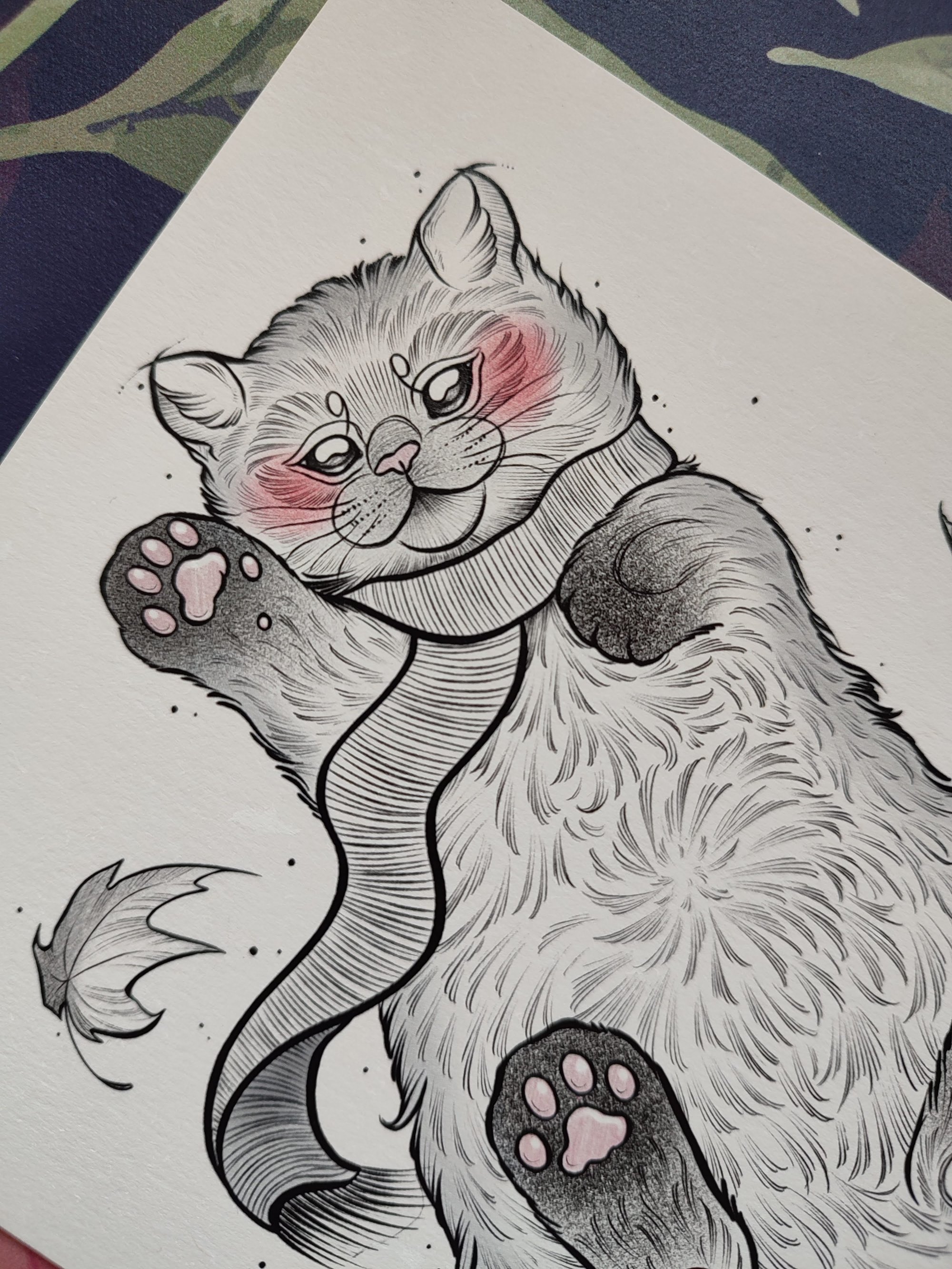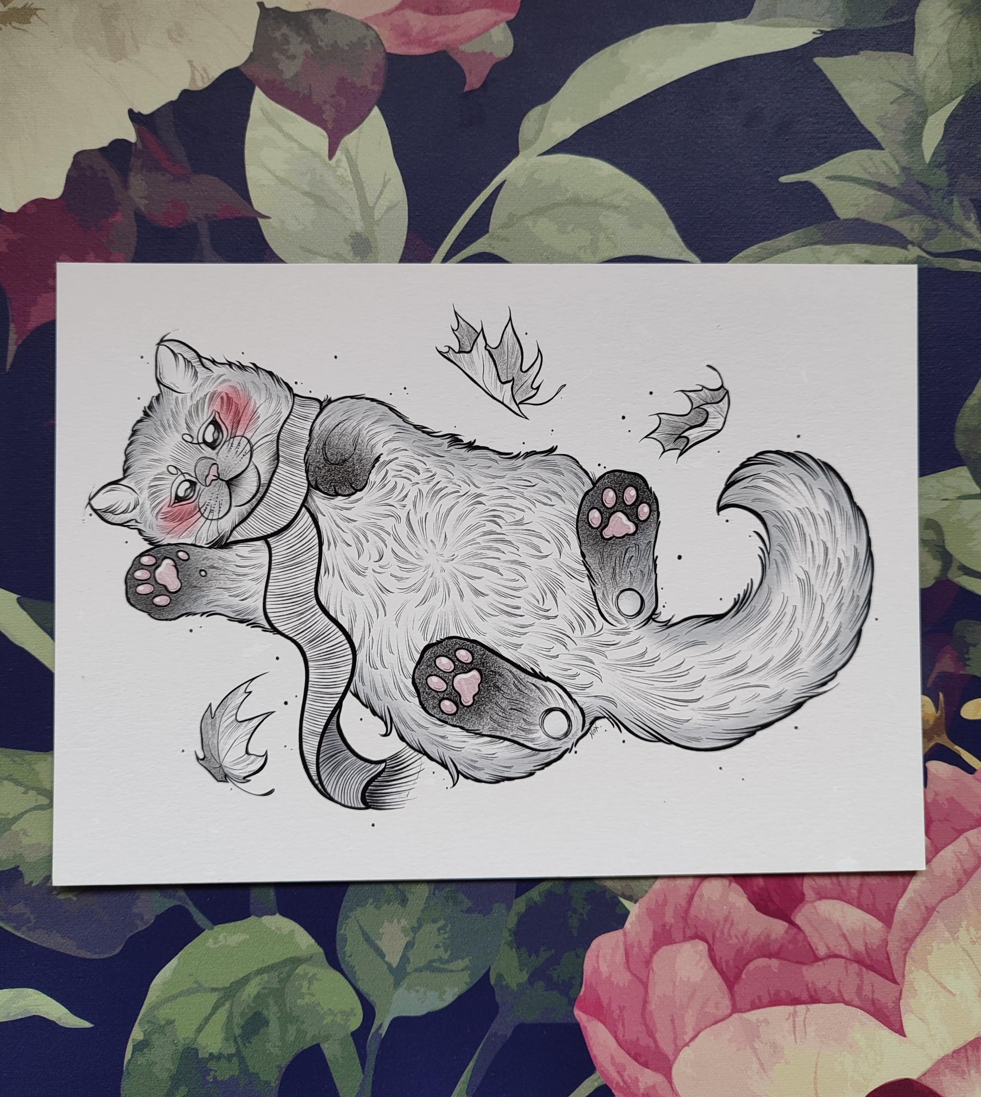 Autumn cat - high quality A5 print on slightly textured 100% recycled paper, ready to be framed.