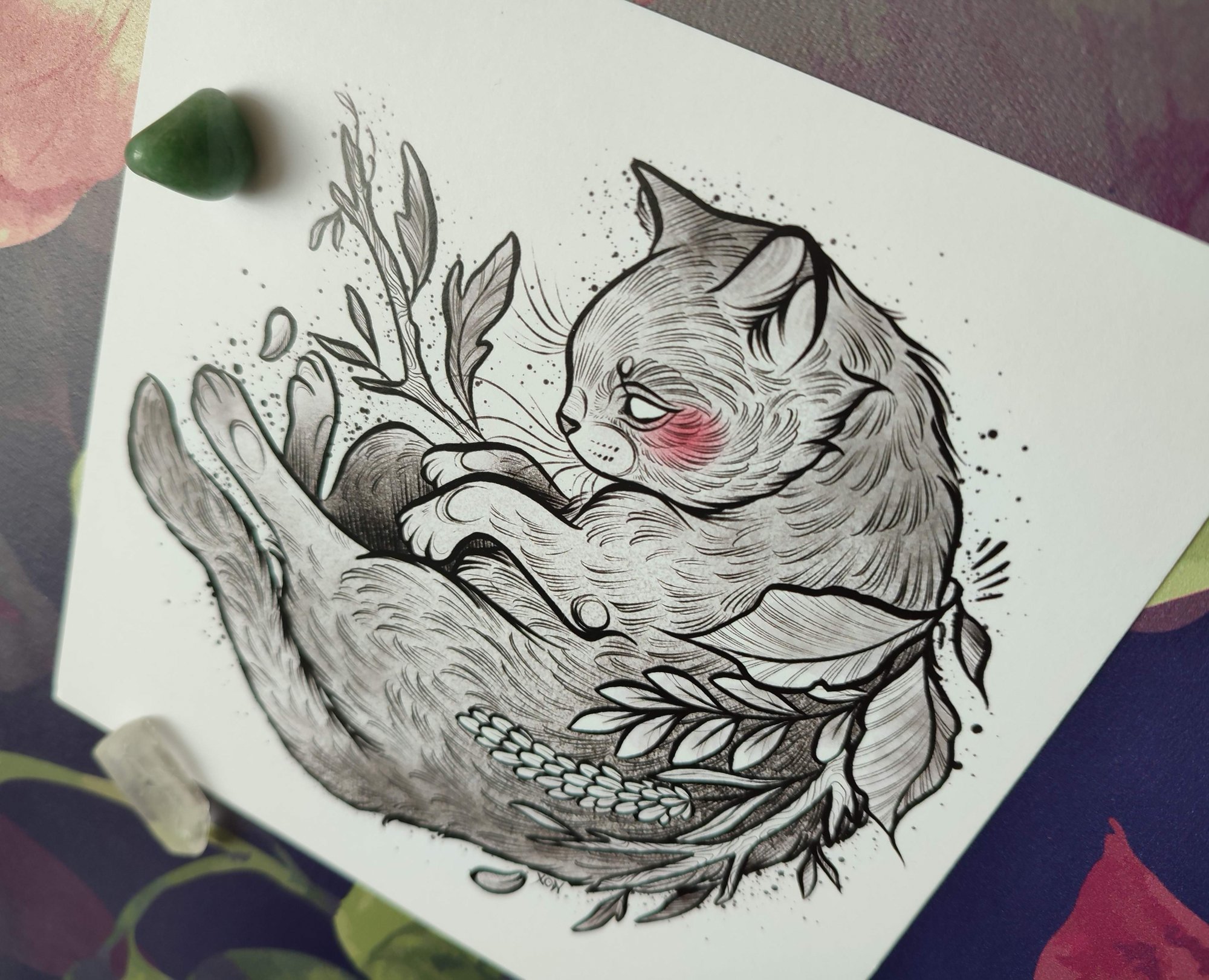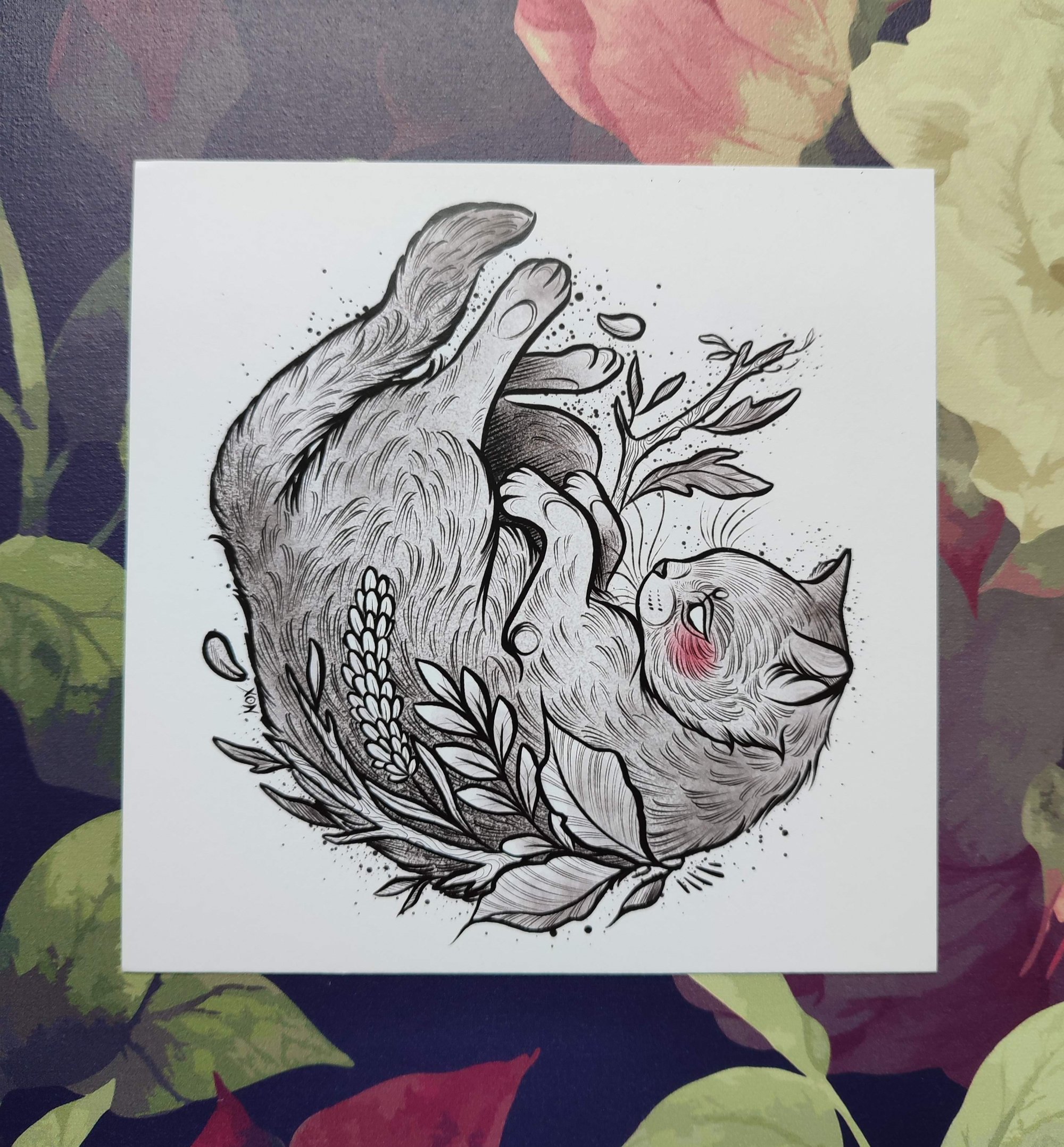 Charity print featuring a cat with pink blush - high quality square print on smooth heavyweight paper, ready to be framed.