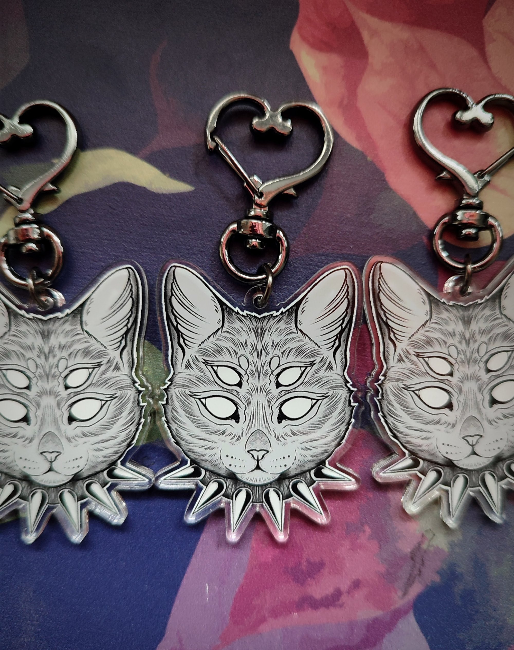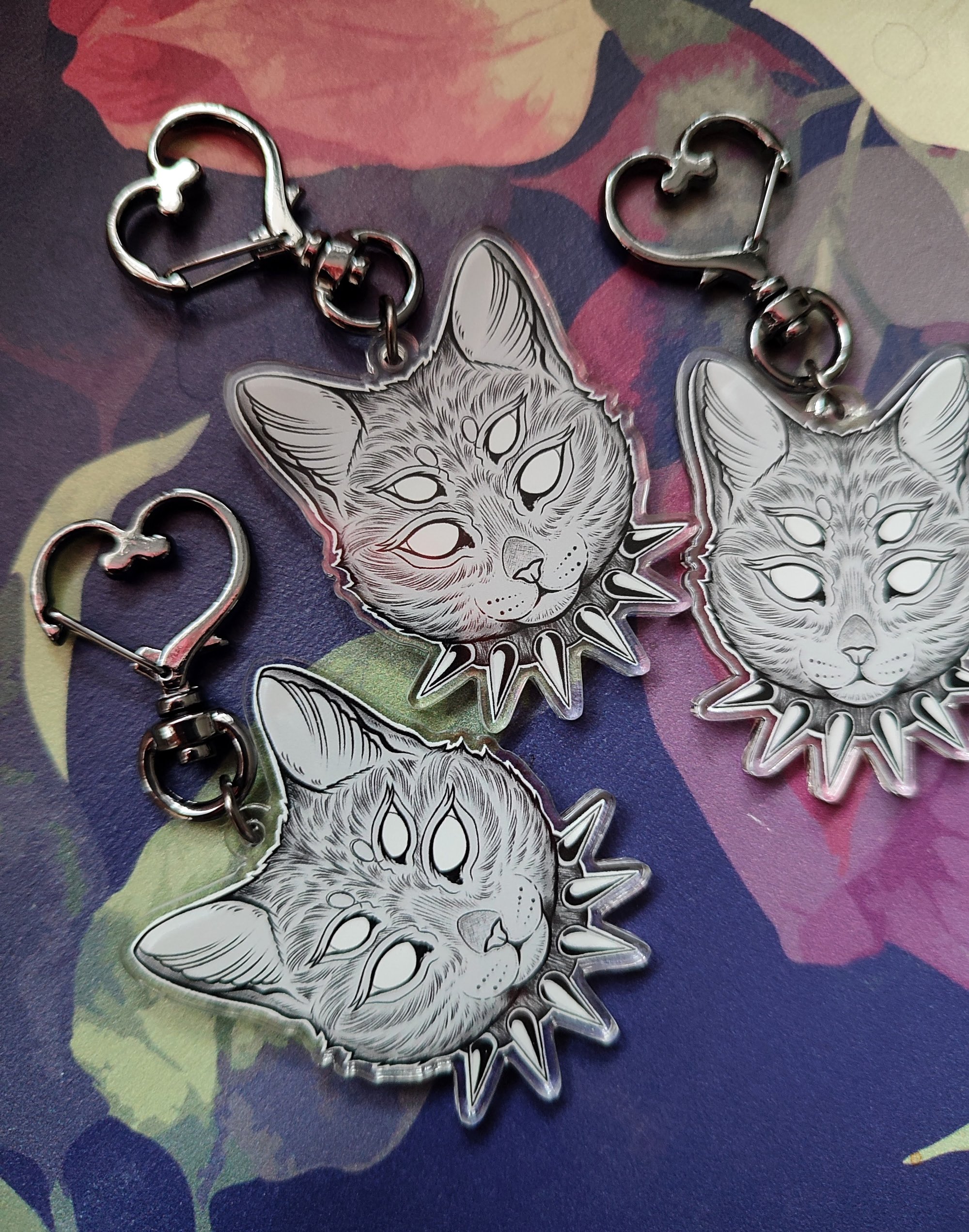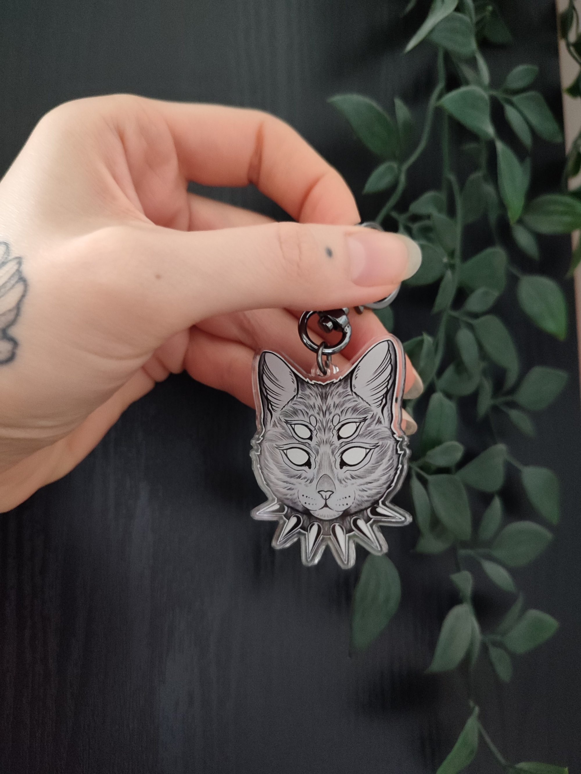 Goth cat - double-sided and double layered acrylic keychain.