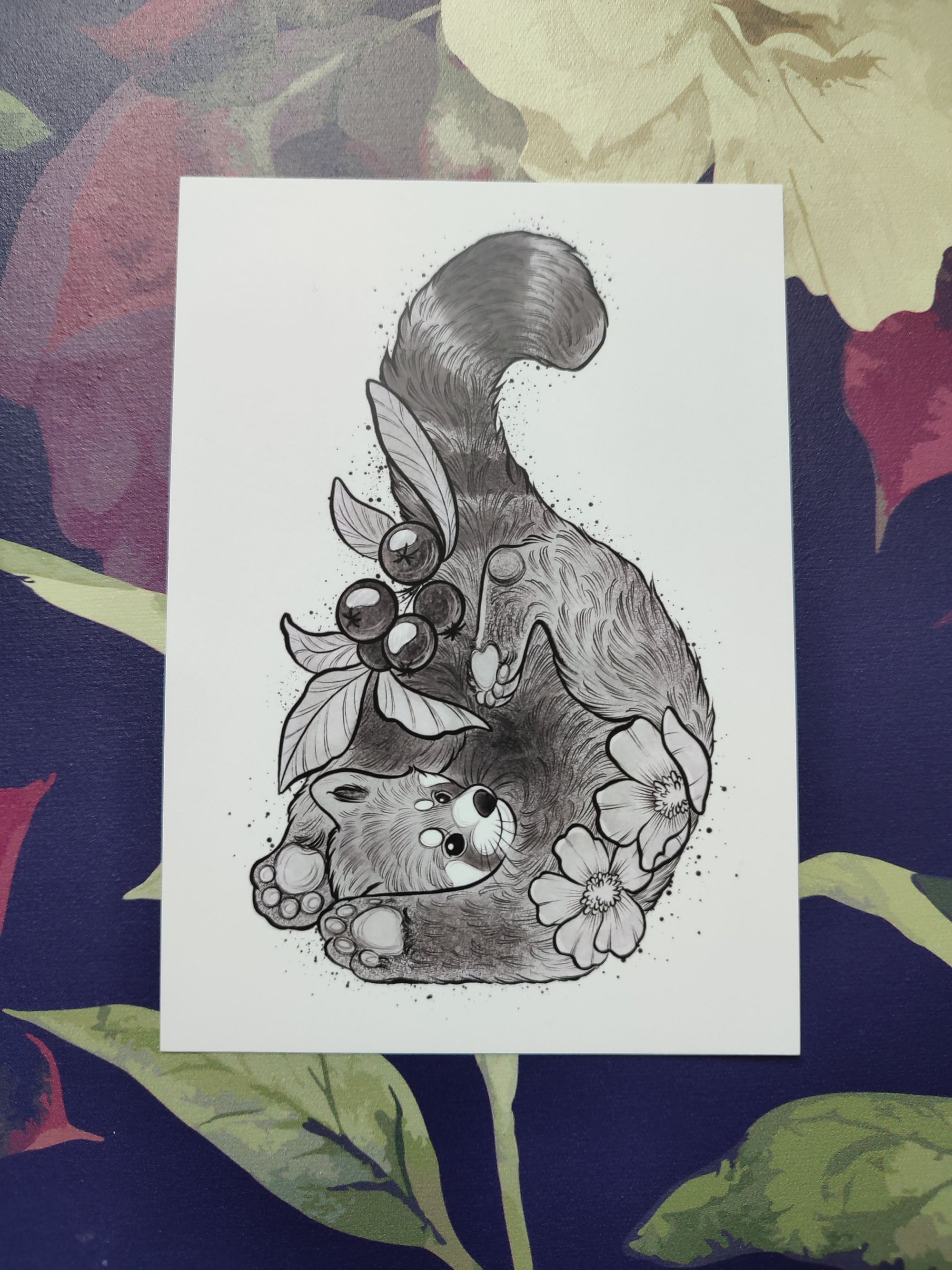Postcard + sticker red panda