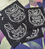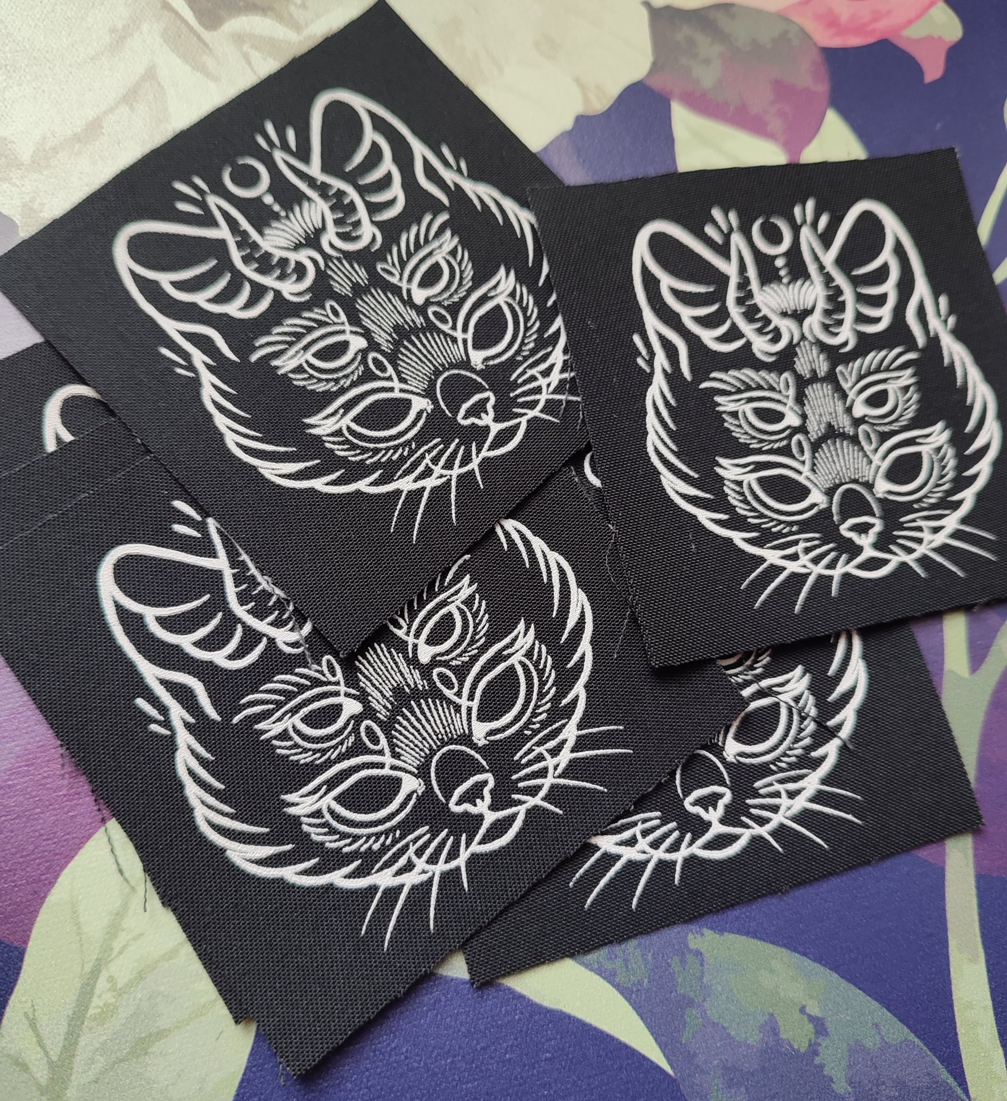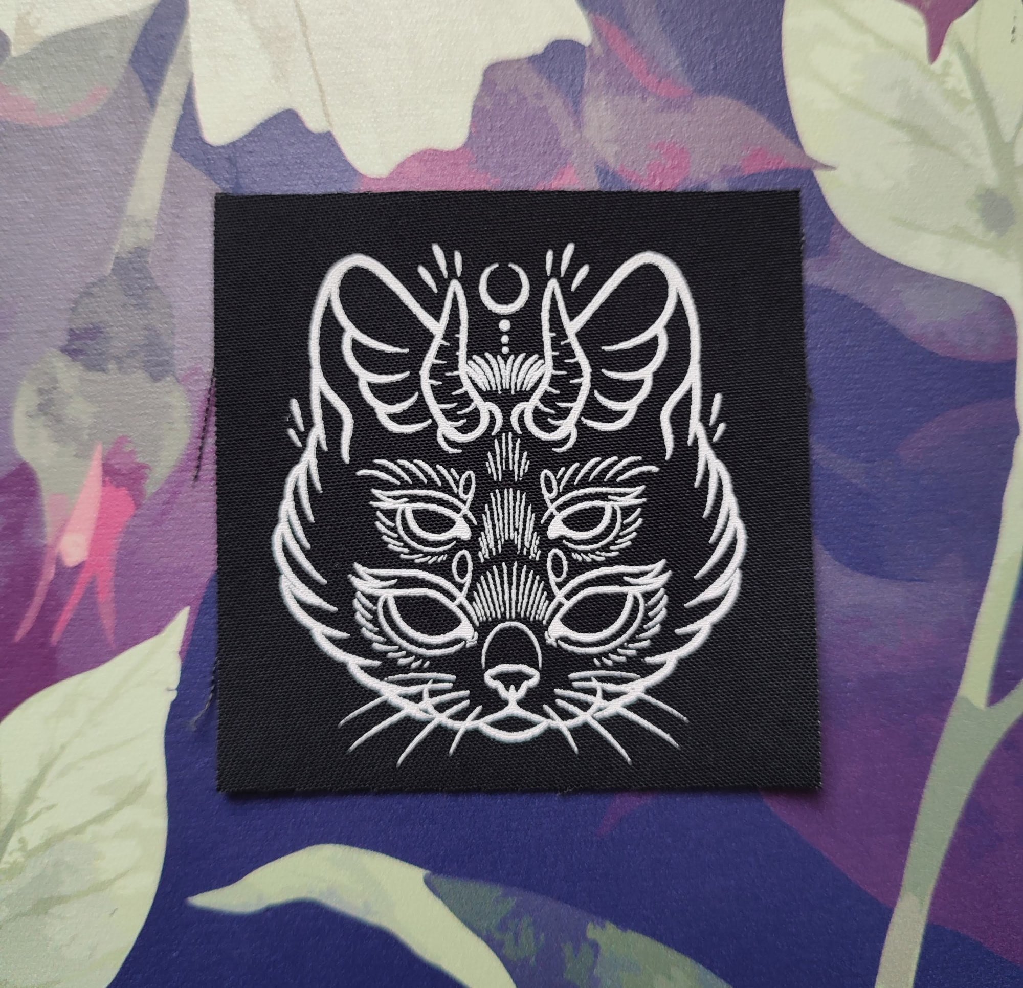 Screen printed patch featuring a Demon Cat. Great for spicing up your jacket/hoodie/bag!